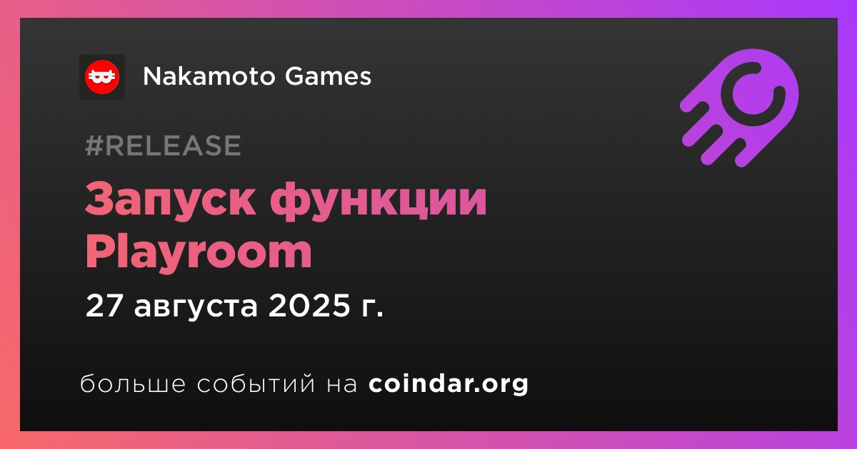 Nakamoto Games запустит новую функцию Playroom в августе. Игроки смогут создавать индивидуальные игровые комнаты с настраиваемыми правилами, включая призовые фонды, количество участников и вступительные взносы.