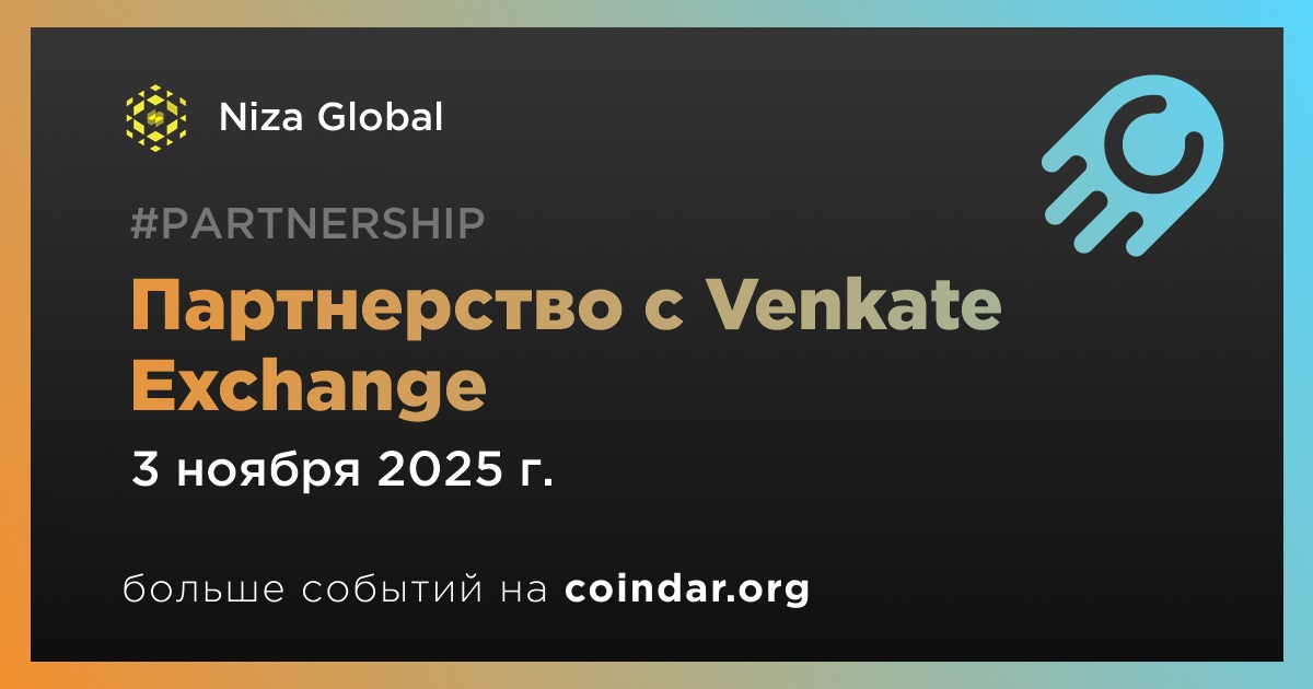 Niza Global объявила о заключении стратегического партнёрства с биржей Venkate Exchange 3 ноября. Venkate Exchange — централизованная Web3-биржа, предлагающая программы с повышенным вознаграждением и ориентированные на сообщество торговые сервисы.