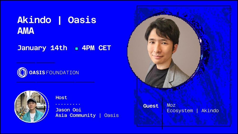 14 января Oasis проведет сессию вопросов и ответов в которой примут участие представители Akindo — платформы для проведения хакатонов. Обсуждение будет сфокусировано на рынке Азии.