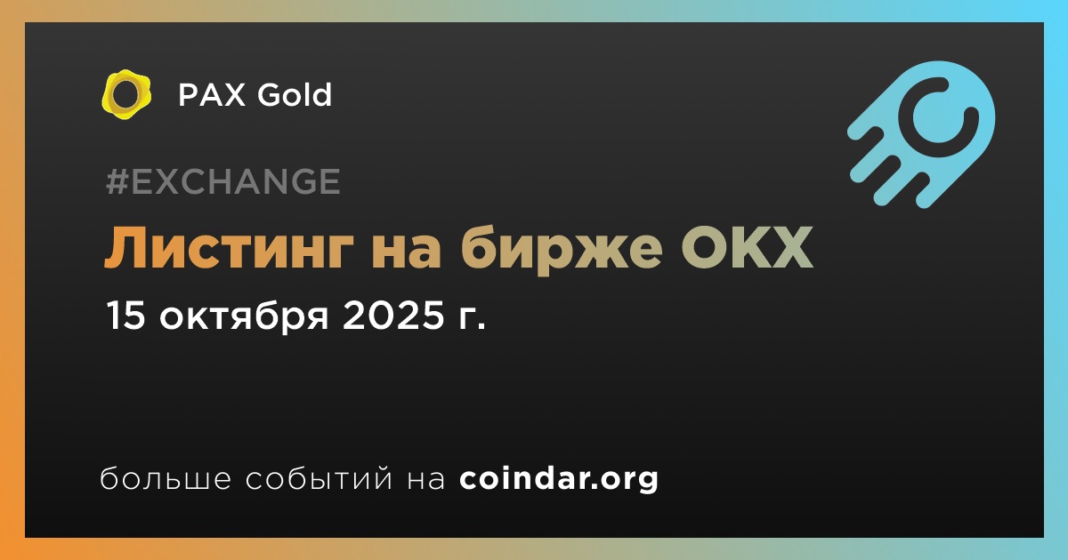 OKX проведет листинг PAX Gold (PAXG) 15 октября в 7:00 по UTC.