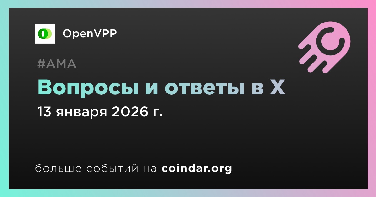 OpenVPP проведет сессию вопросов и ответов в X 13 января в 16:00 по UTC. В ходе мероприятия будут затронуты вопросы предстоящих анонсов, обновлений продукта и планов развития проекта.