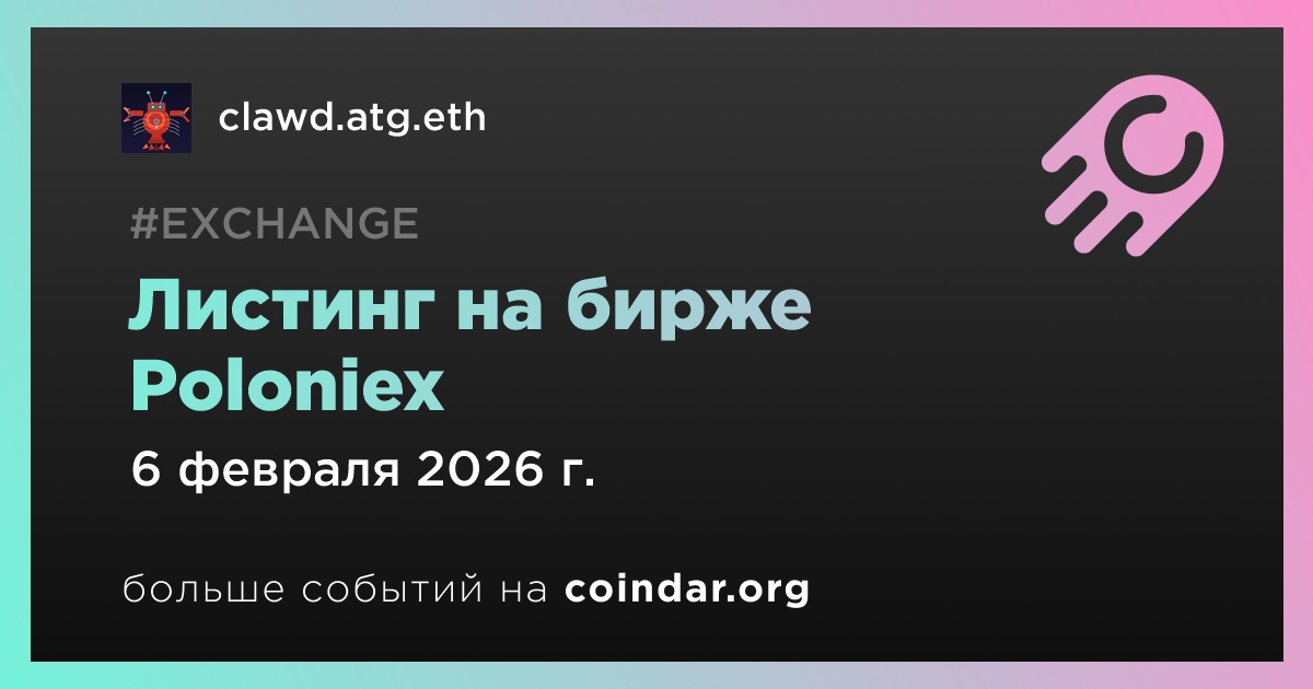 Poloniex проведет листинг Clawd.atg.eth (CLAWD) 6 февраля.