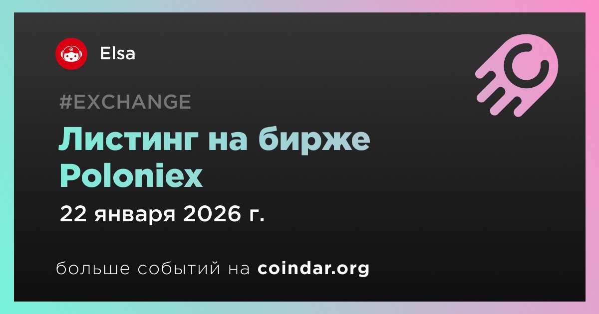 Poloniex проведет листинг Elsa (ELSA) 22 января в 11:00 по UTC.