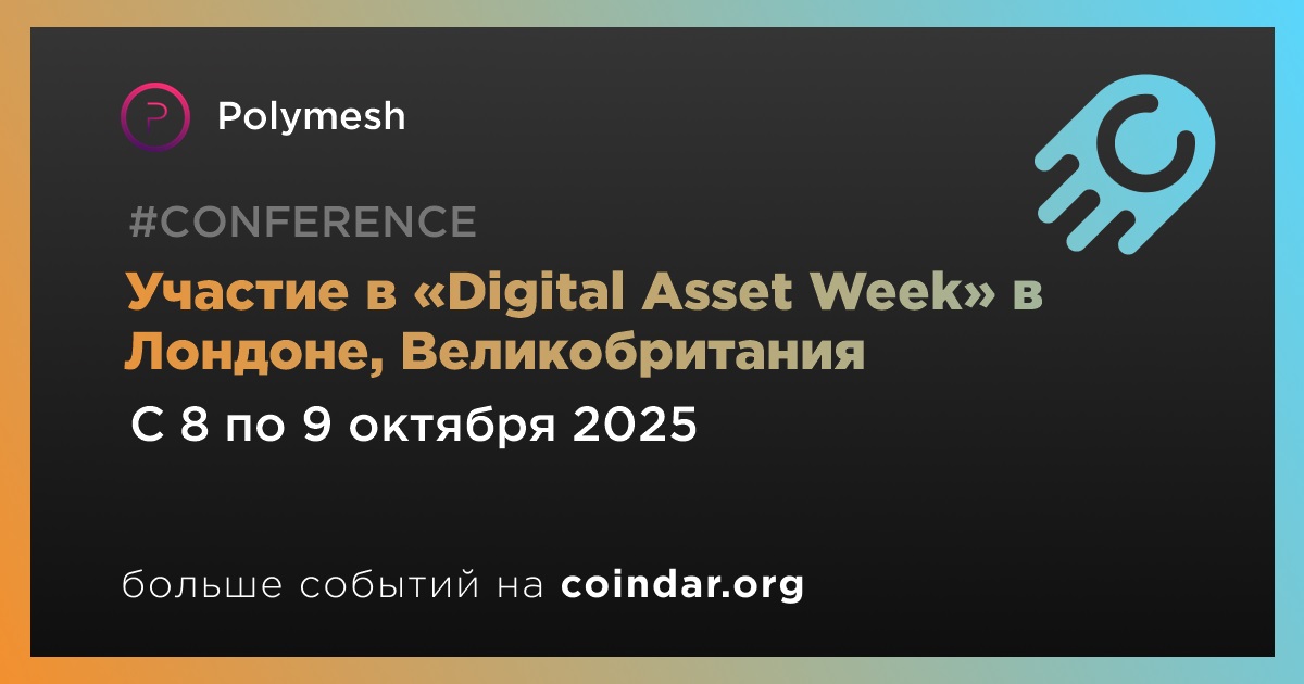 Polymesh объявляет, что руководитель отдела по работе с разработчиками Фрэнсис О’Брайен выступит в Лондоне на конференции «Digital Asset Week» 8–9 октября. Панельная дискуссия «Ликвидность как инфраструктура: создание основ для токенизированных рынков» начнётся в 14:40 по UTC.