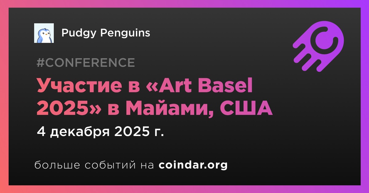 Pudgy Penguins проведет мероприятие 4 декабря во время выставки «Art Basel 2025» в Майами, а мероприятия до и после нее будут организованы совместно с OpenSea.