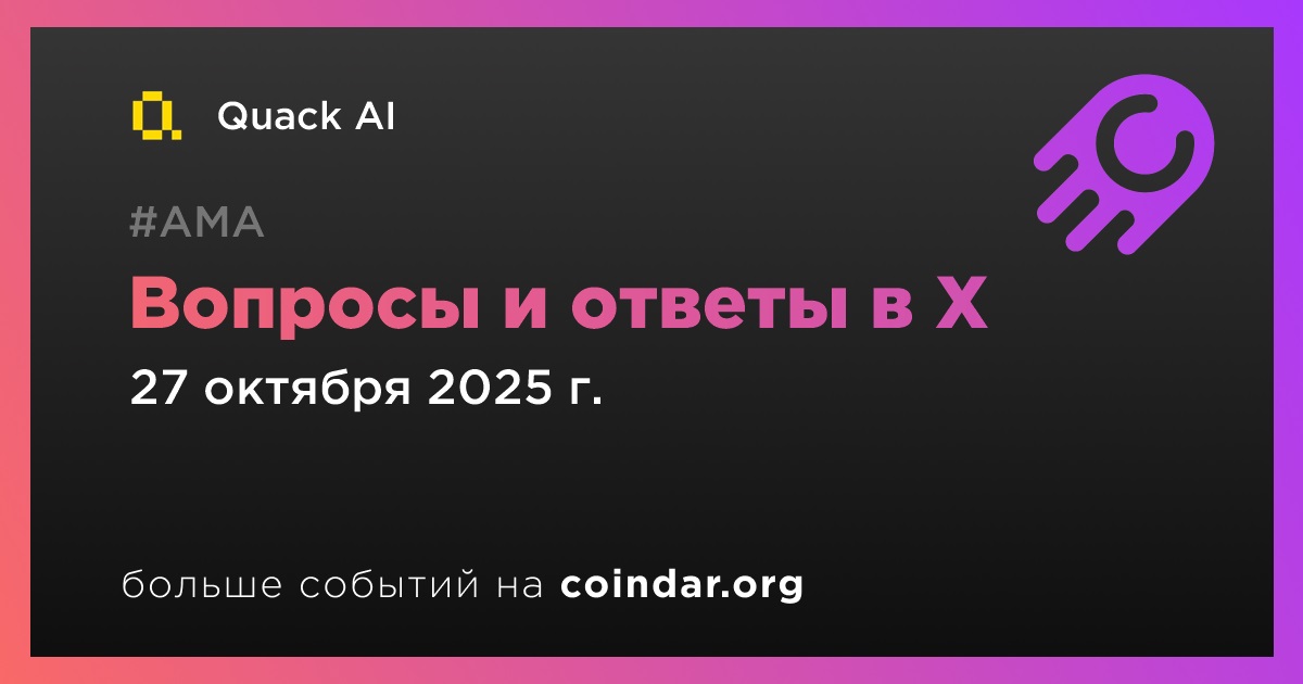 Quack AI проведет сессию ответов на вопросы в X 27 октября в 11:00 по UTC. Основная тема обсуждения — влияние систем, основанных на искусственном интеллекте, на блокчейн-управление и автоматизацию.