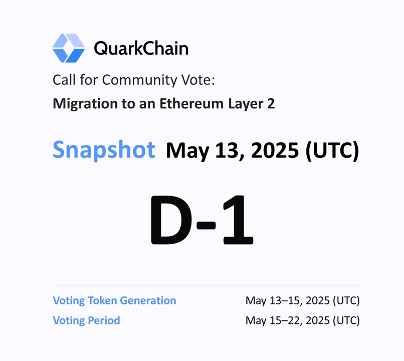 We’re just 1 day away from the Snapshot for the QuarkChain Governance Vote on our migration to Ethereum Layer 2.