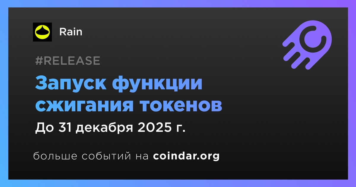 Rain запустит функцию сжигания токенов в четвертом квартале