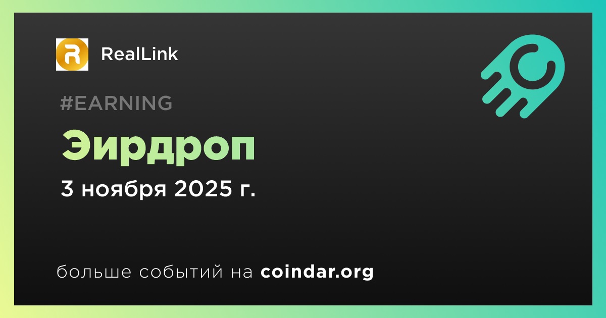 RealLink объявил о проведении эирдропа в честь запуска моста в сети BSC и сообщил, что снимок кошельков с балансом более 1 000 REAL в сети Binance Smart Chain будет сделан 3 ноября.