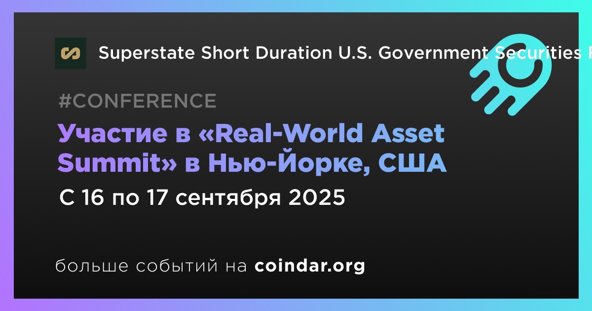 Superstate Short Duration U.S. Government Securities Fund (USTB) примет участие в «Real-World Asset Summit» в Нью-Йорке 16 сентября