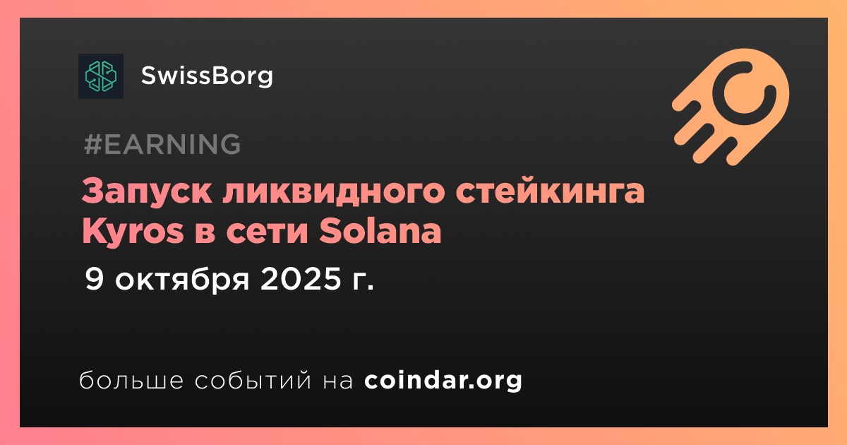 SwissBorg запустит слой ликвидного стейкинга Kyros в сети Solana 9 октября