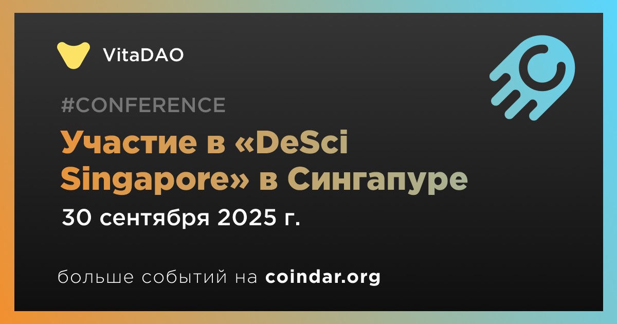Представители VitaDAO, Артур Хейс и Пол Кольхаас, выступят на сцене на конференции «DeSci Singapore». Это однодневное мероприятие, которое состоится 30 сентября в Сингапуре и будет посвящено искусственному интеллекту, токенизированной интеллектуальной собственности и децентрализованным клиническим испытаниям.