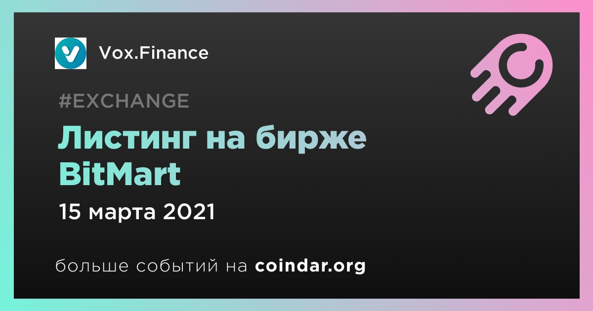 BitMart станет 1-й по величине среди бирж, на которых представлена криптовалюта Vox.Finance