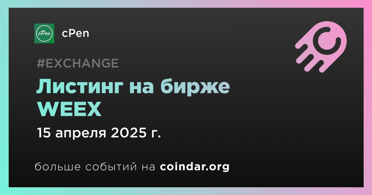 WEEX проведет листинг cPen (CPEN) 15 апреля в 9:00 UTC.
