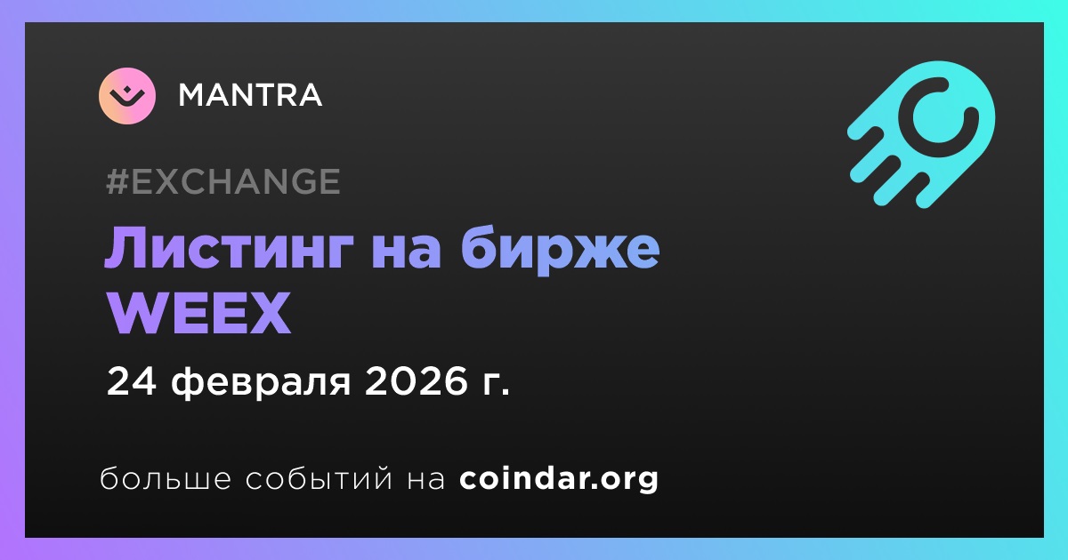 WEEX проведет листинг MANTRA (MANTRA) 4 марта в 8:00 по UTC.