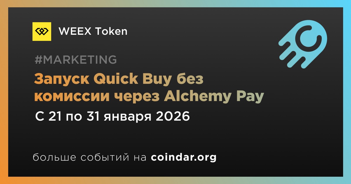 WEEX запустила промо-кампанию совместно с Alchemy Pay, в рамках которой покупки через Quick Buy с использованием USD и EUR доступны с комиссией 0%. Дополнительно предусмотрены бонусы для фьючерсной торговли на сумму до 15 USDT. Пополнение счёта осуществляется в три шага, срок действия предложения — до 31 января.