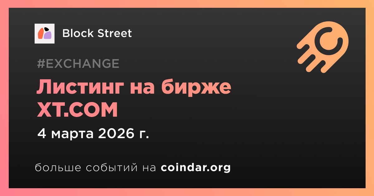 XT.COM станет 5-й по величине среди бирж, на которых представлена криптовалюта Block Street