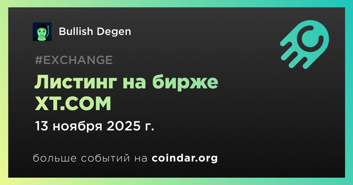 Биржа XT.COM запускает торги токеном BULLISH (Bullish Degen) 13 ноября. Вывод средств будет доступен 14 ноября в 12:00 UTC.