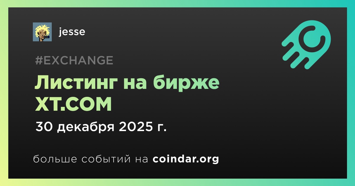 XT.COM проведет листингJesse (JESSE) 30 декабря.
