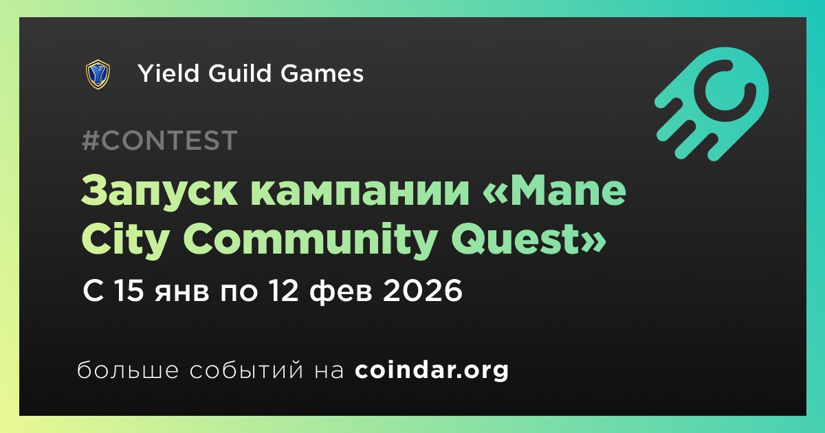 Yield Guild Games совместно с Loaded Lions запускают кампанию «Mane City Community Quest», объединяющую социальные и игровые задания с вознаграждениями в токенах. Период проведения — с 15 января по 12 февраля. Общий призовой фонд составляет $2 250 в LION. Участники выполняют задания в X и Discord, а также игровые активности в Mane City, включая открытие внутриигрового рынка и покупку ваучеров. Вознаграждения распределяются еженедельно, при этом по завершении кампании предусмотрен дополнительный бонус для пользователей, выполнивших все условия.