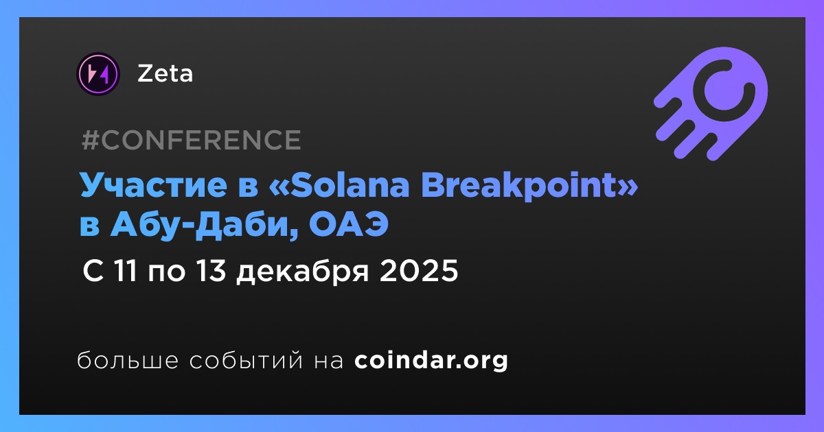 Zeta примет участие в конференции «Solana Breakpoint», которая пройдет в Абу-Даби с 11 по 13 декабря.