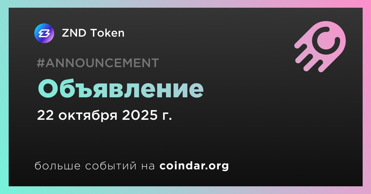 ZND Token сделает объявление 22 октября.
