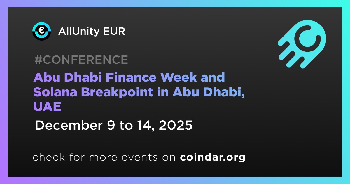 AllUnity EUR, 9-14 Aralık tarihleri arasında Abu Dabi'de düzenlenecek Abu Dabi Finans Haftası ve Solana Breakpoint'e katılacak ve projeyi COO Rupertus Rothenhaeuser temsil edecek.