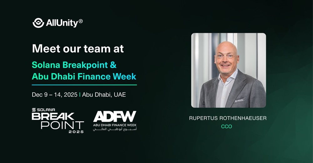 Rupertus Rothenhaeuser will represent #AllUnity next week at Abu Dhabi Finance Week and Solana Breakpoint.