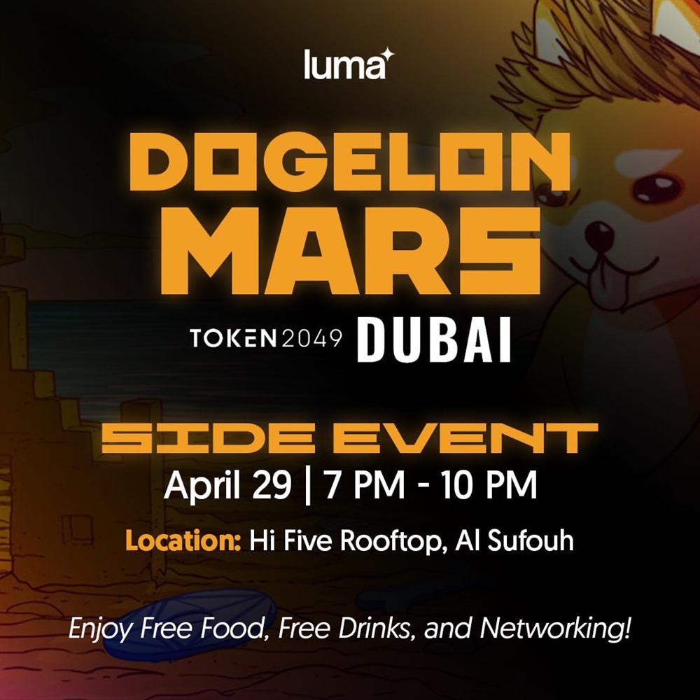 Dogelon Mars, 29 Nisan'da Dubai'de düzenlenecek TOKEN2049 fuarı sırasında 15:00-18:00 UTC saatleri arasında bir yan etkinliğe ev sahipliği yapacak.