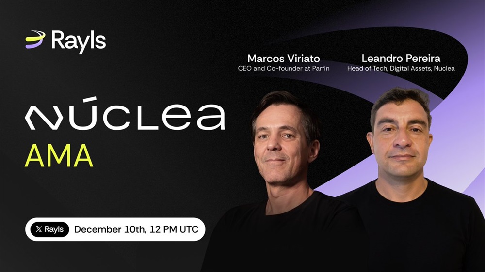 Rayls will host an AMA on X on December 10th at 12:00 UTC, where the CEO and co-founder at Parlin, Marcos Viriato and a representative of Núclea will examine the transition of Brazil’s financial infrastructure to on-chain tokenisation.