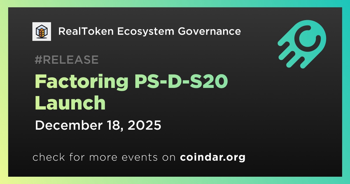 18 Aralık'ta saat 17:00 UTC'de RealT, platformuna yeni bir faktoring tokenı olan Factoring PS-D-S20'yi ekleyecek. Bu lansman, RealT'nin ürün yelpazesini genişletiyor ve yatırımcılara portföy çeşitlendirmesi için ek bir seçenek sunuyor.