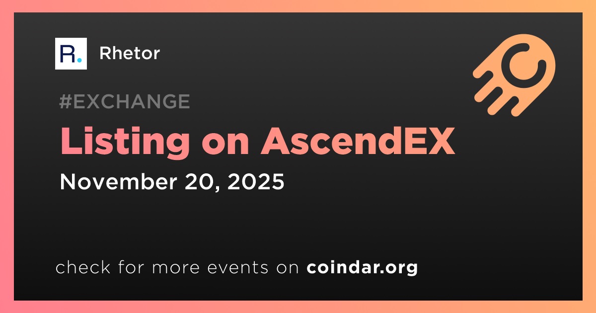 AscendEX sẽ niêm yết Rhetor theo cặp giao dịch RT/USDT vào ngày 20 tháng 11 lúc 10:00 sáng UTC.