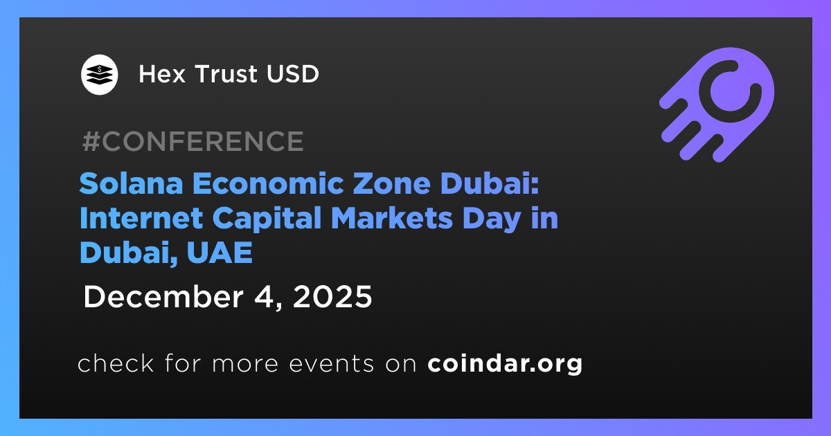 Hex Trust USD 将于 12 月 4 日 08:30 UTC 在迪拜参加“Solana 经济区迪拜:互联网资本市场日”。预计 Hex Trust MENA 董事总经理 Filippo Buzzi 和 Sol Global 首席执行官 Davide Marcotti 将探讨银行和主权财富基金对数字资产的资本配置不断增加,以及将加密货币战略性地整合到机构投资组合中的问题。