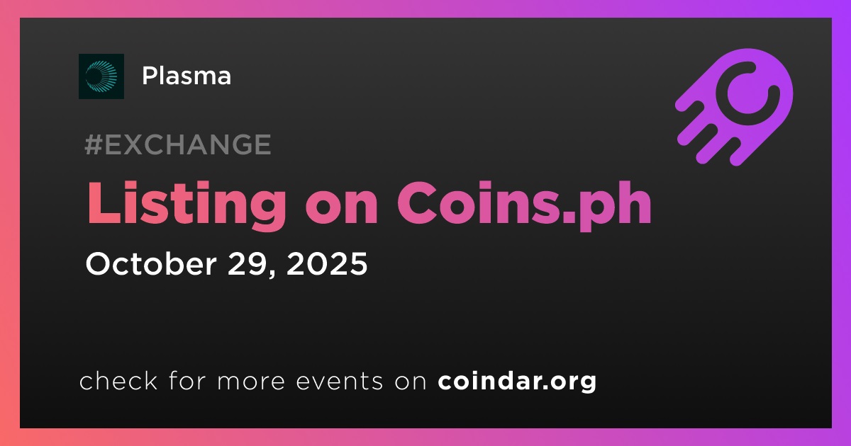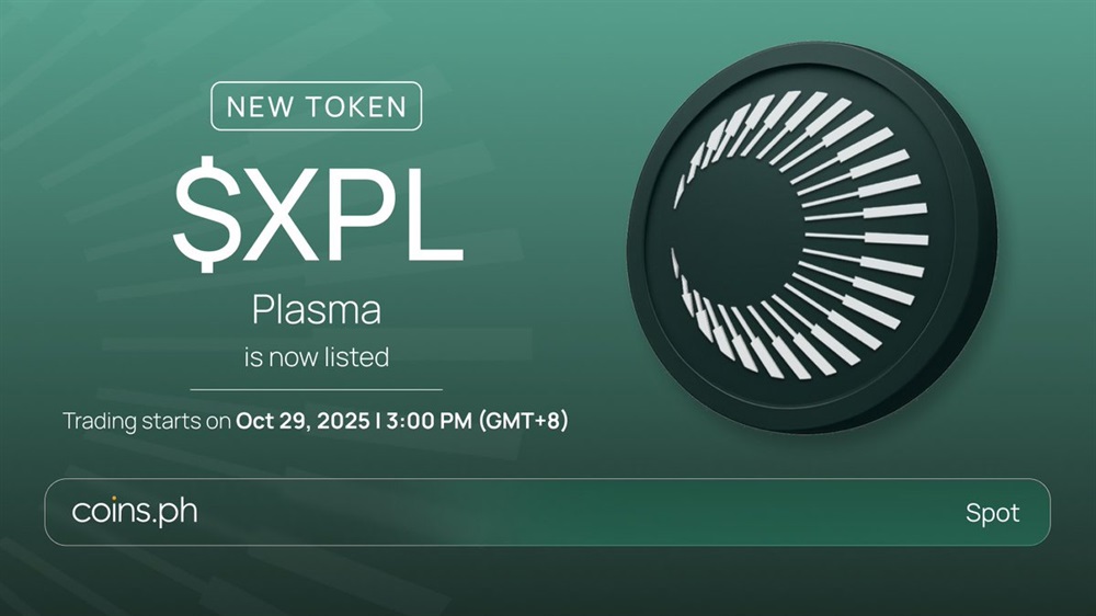 Plasma 报告称,其原生代币 XPL 于 10 月 29 日在 Coins.ph 交易所的现货市场上市。