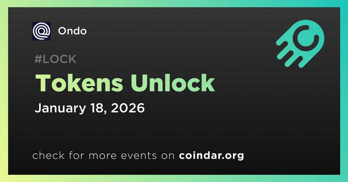Ondo Finance will unlock 1,900,000,000 ONDO tokens on January 17th, constituting approximately 57.23% of the currently circulating supply.