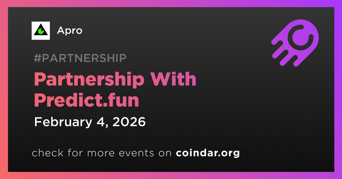 Apro announced a partnership with prediction market platform predict.fun, which operates on the BNB Chain and is supported by YZi Labs. Under the collaboration, Apro will serve as one of predict.fun’s oracle data providers.