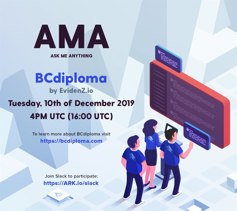 Join us for an #AMA with the @BCdiploma (by @MyEvidenZ) team - Tuesday, 10th of December 2019, 4PM UTC (16:00 UTC) in #ARK's Slack!