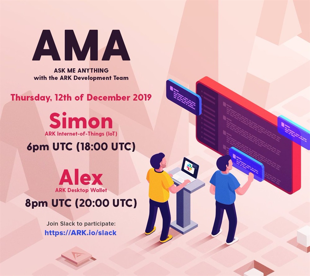 Join the #ARK Slack and ask questions tomorrow, the 12th of December! This week will be about ARK #IoT (Simon, 6pm UTC) and ARK #Desktop #Wallet (Alex, 8pm UTC)! #AMA's with $ARK Development Team.