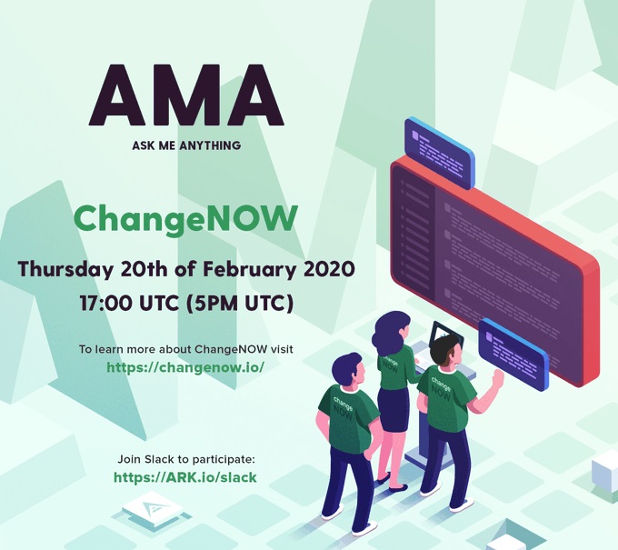 Join us for an #AMA with the team from ChangeNOW (@ChangeNOW_io) on Thursday, 20th February at 5PM UTC (17:00 UTC) in the ARK Slack!