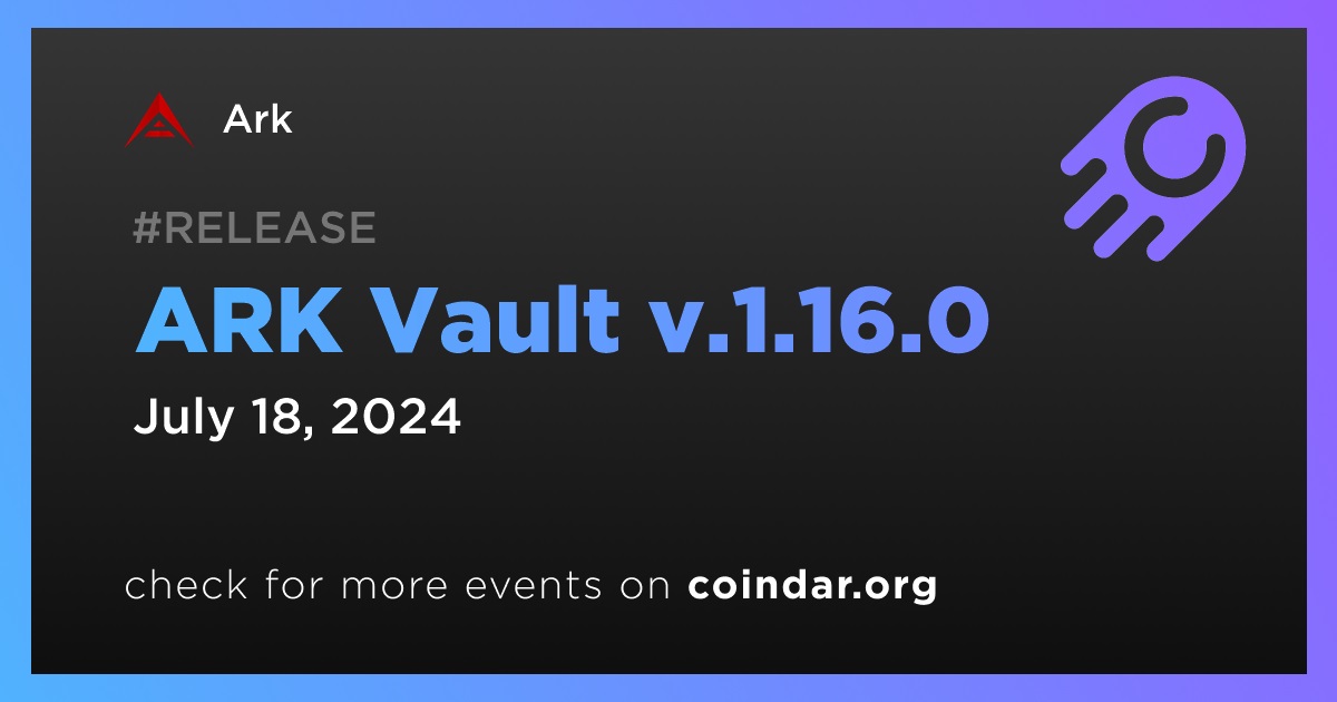 Ark to Release ARK Vault v.1.16.0