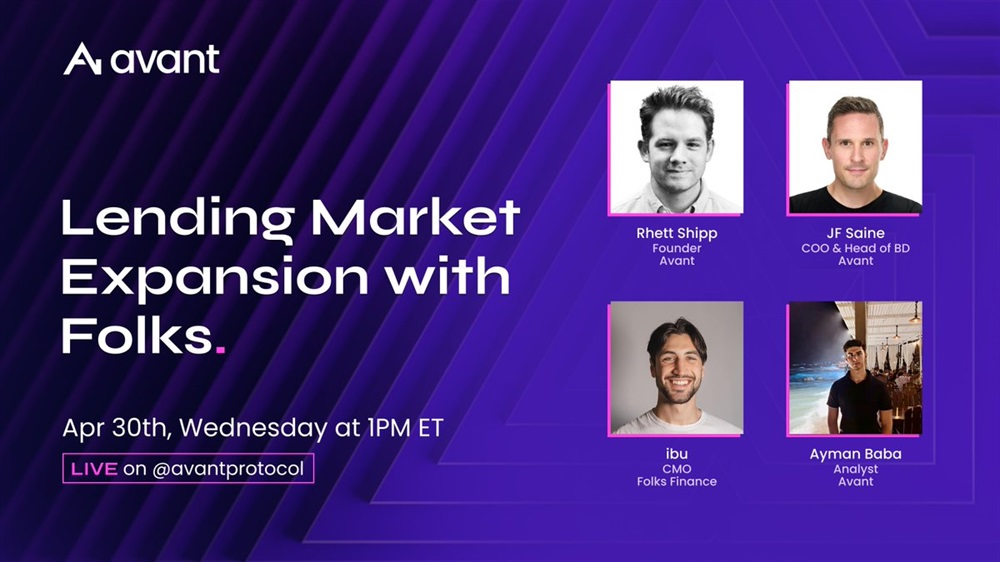 Avant USD will host an AMA on X on April 30th at 17:00 UTC. During the session they will discuss the integration with Folks Finance.