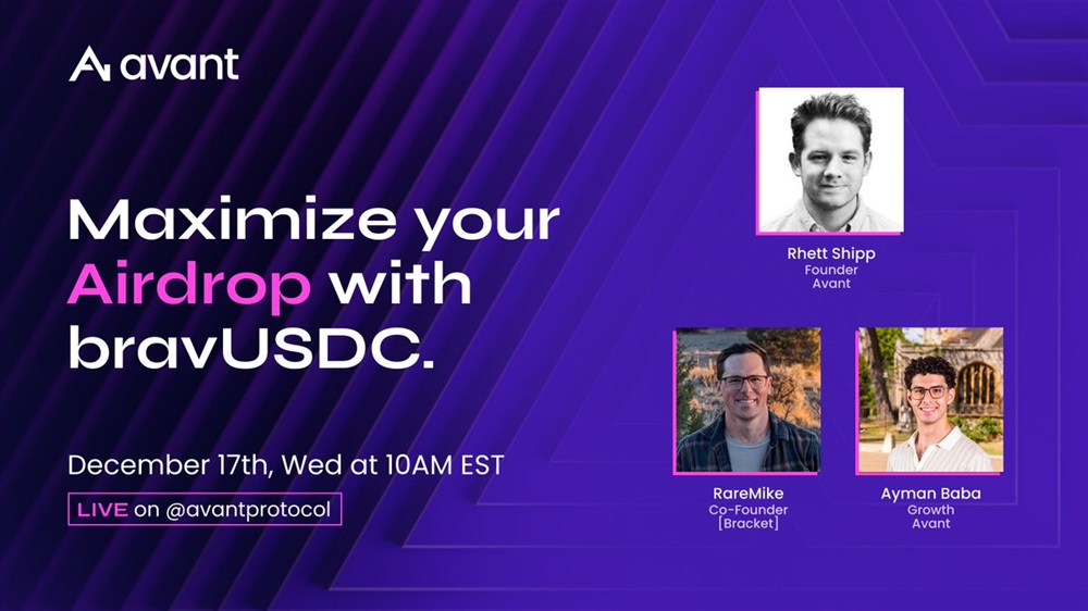 The session will feature chief executive officer Rhett Shipp, who will outline strategies for leveraging bravUSDC to enhance eligibility for the forthcoming AVANT token airdrop.