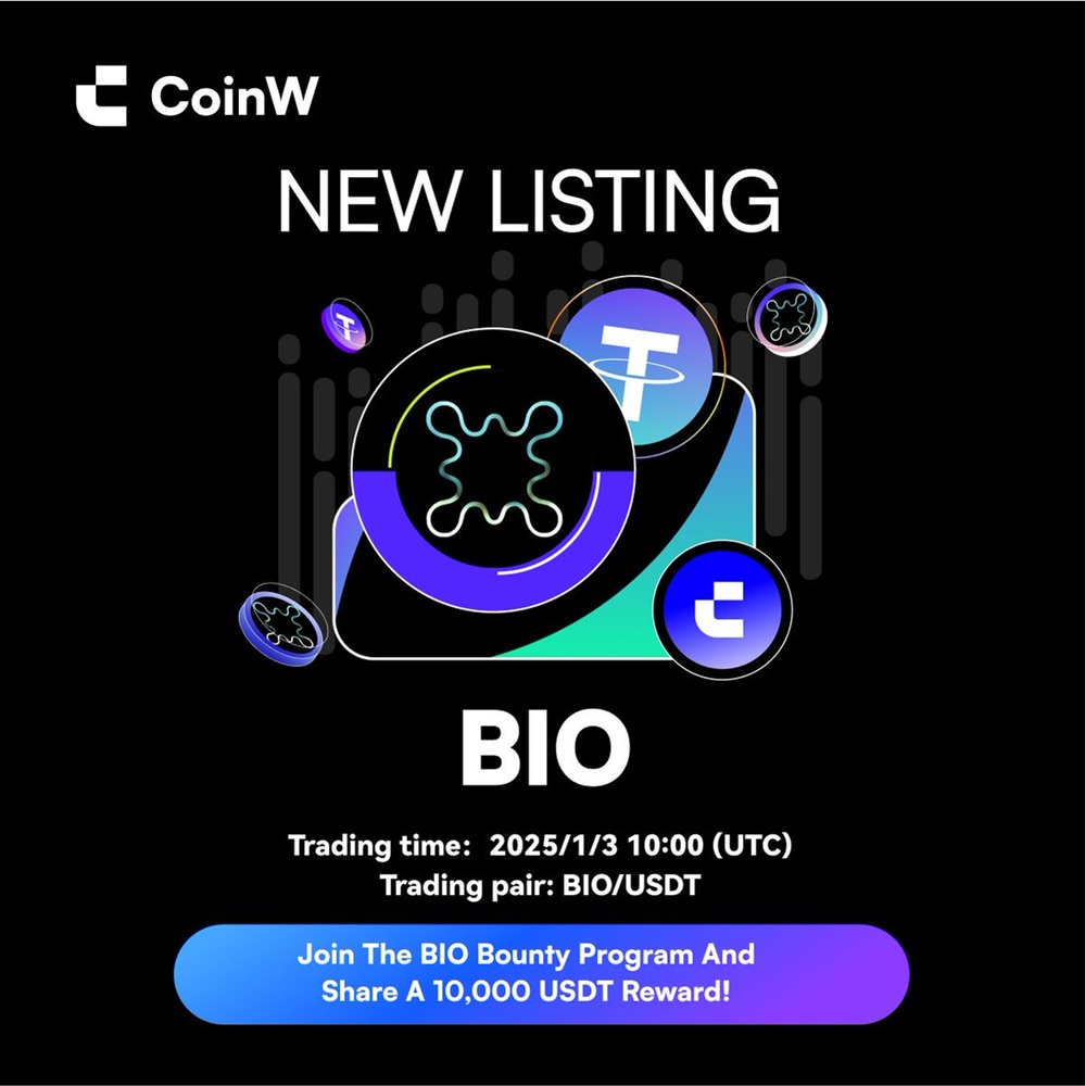 CoinW will list Bio Protocol (BIO) on January 3rd at 10:00 UTC.