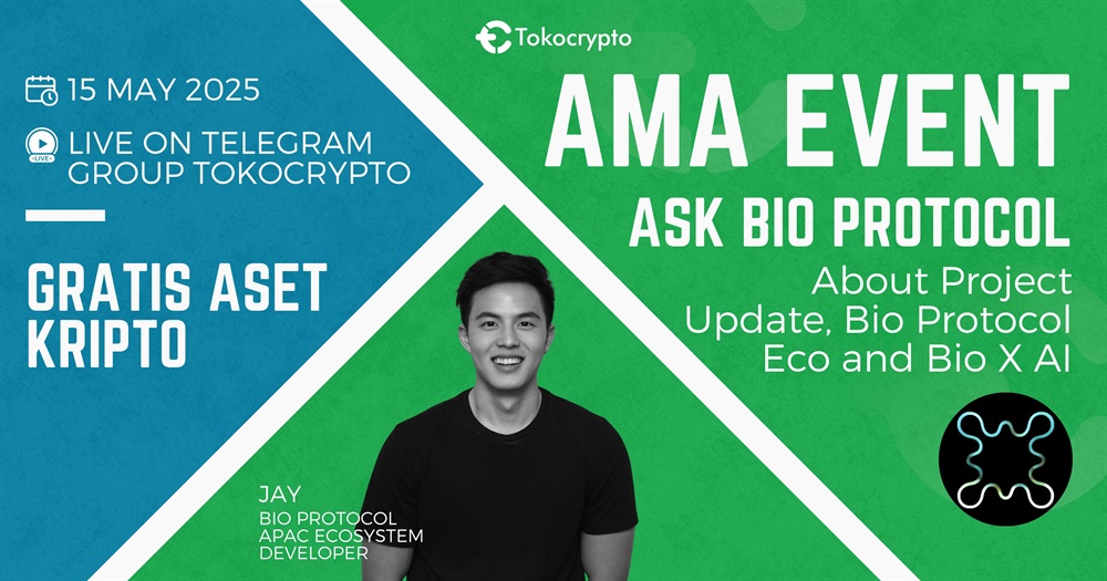 Bio Protocol will hold an AMA on X with Tokocrypto on May 15th at 12:00 UTC, focusing on updates to its ecosystem and the integration of artificial intelligence.