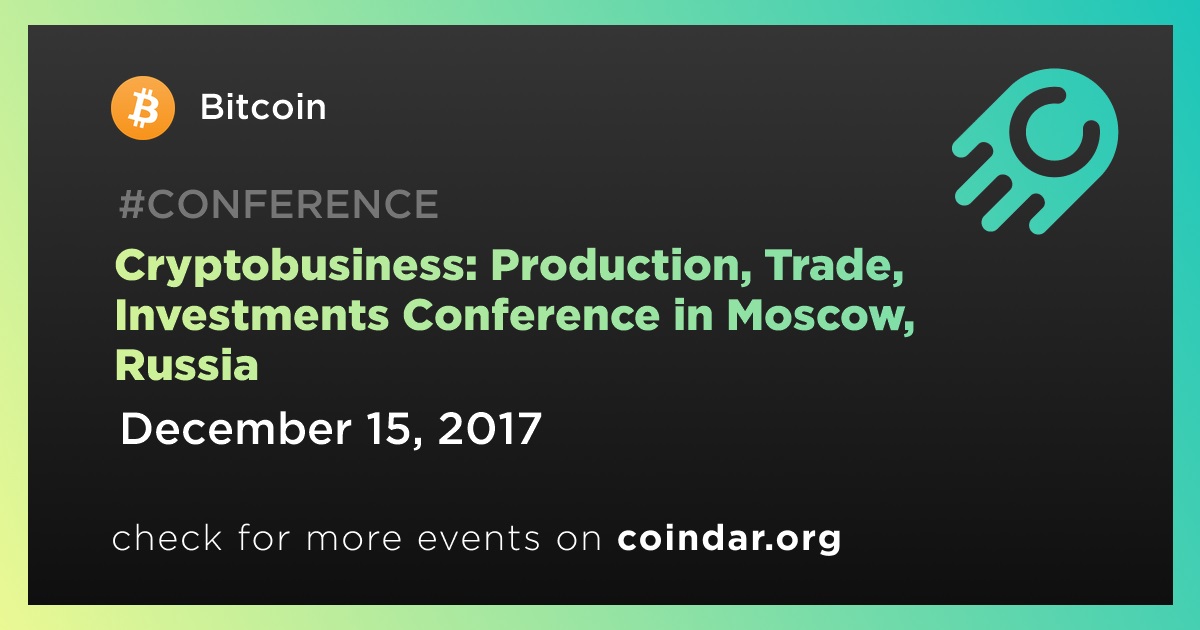 Bitcoin BTC: Cryptobusiness: Production, Trade, Investments Conference in Moscow, Russia