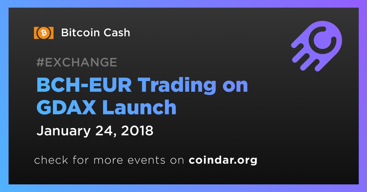 Bitcoin Cash BCH: BCH-EUR Trading on GDAX Launch