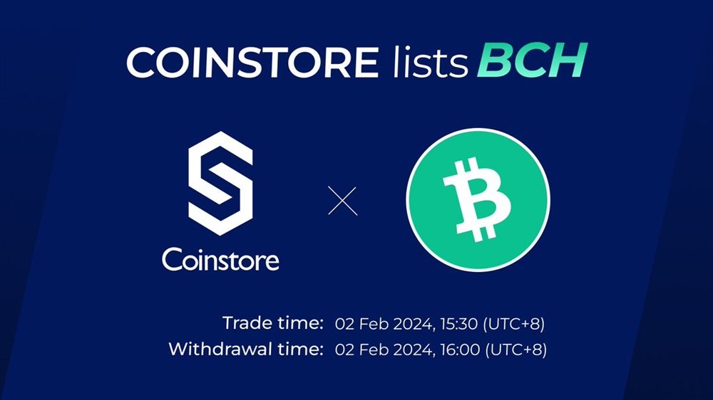 Coinstore will list Bitcoin Cash (BCH) on February 2nd.