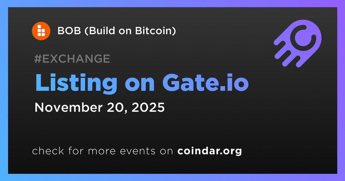 Gate will list BOB (BOB) with the BOB/USDT trading pair.