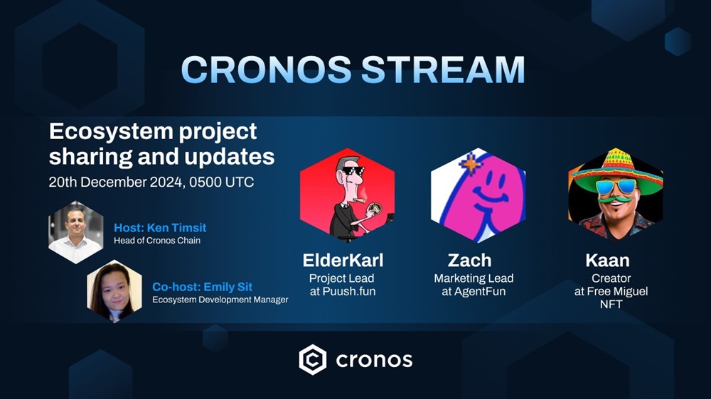 Cronos will host an AMA on X on December 20th at 5 AM UTC. Attendees can expect to receive updates on popular Cronos projects.