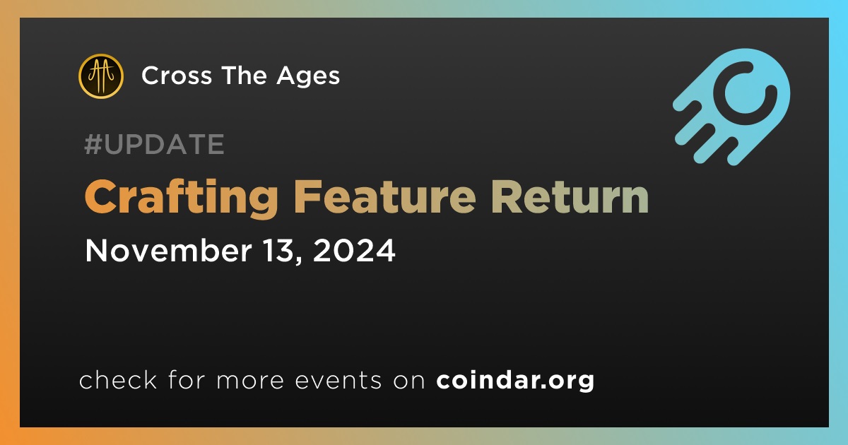 Cross The Ages announces the crafting feature will be reinstated in the TCG on November 13th, at 8:00 UTC.